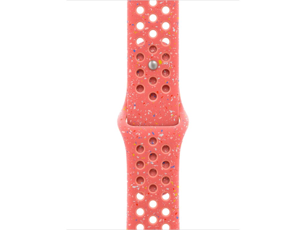 Tenhle sportovní řemínek Nike má vylisované otvory pro větší vzdušnost, je odolný, pevný a přitom krásně poddajný. Obsahuje barevné vločky vytvářející náhodné vzory, takže každý řemínek je originál. Jeho hladký, hutný materiál se elegantně ovine kolem zápěstí a příjemně sedí. A nově se zapíná na hliníkový kolíček s matným povrchem.