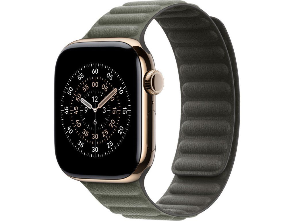 Magnetický tah z tkaniny FineWoven, která se vyrábí z odolného mikrokepru, na omak působí jako měkký semiš. Elegantně se ovine kolem zápěstí a hladce se zapne zalisovanými magnety, které se jemně ohýbají, aby řemínek celý den dobře držel a zároveň byl pohodlný.