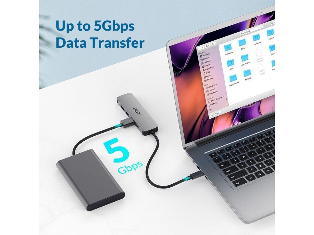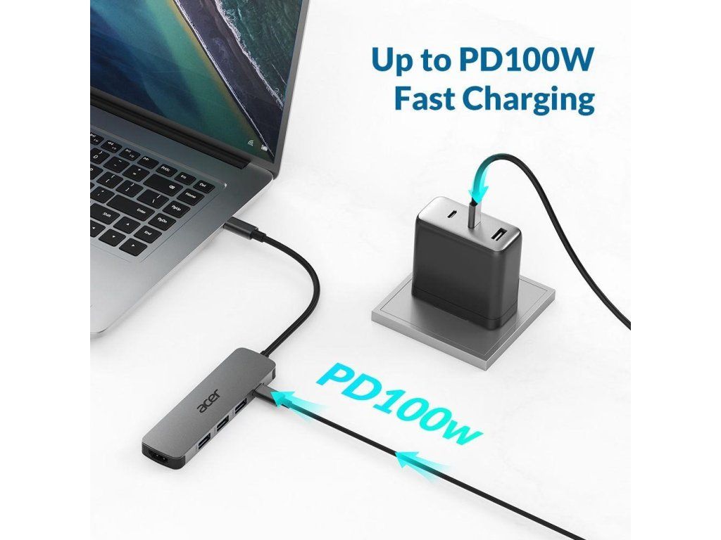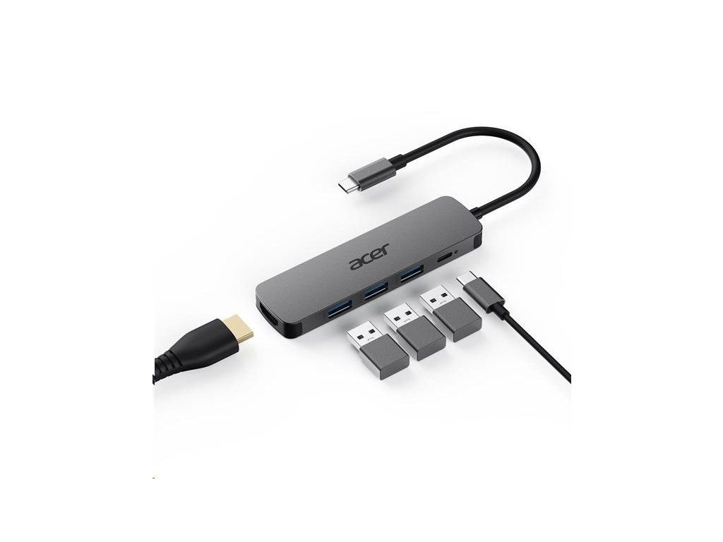 Acer 5IN1 Type- C dongle,HDMI,USB3.0,USB-C,100W PD,Dark Silver