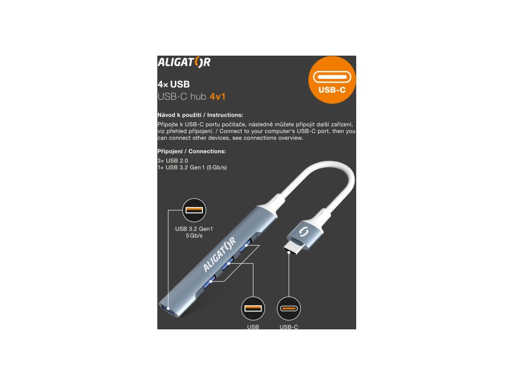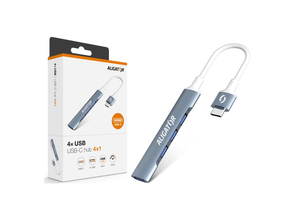 *Aligator Hub USB-C (M) na 4x USB (F) s podporou USB 3.2