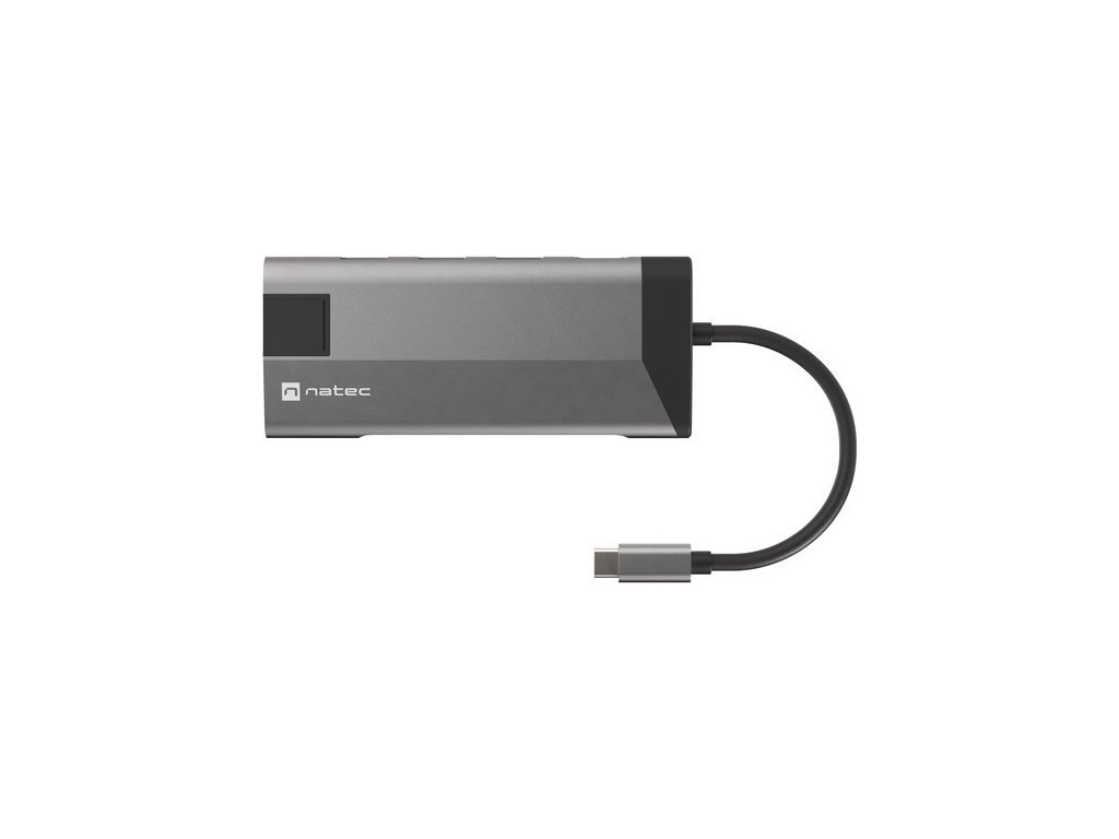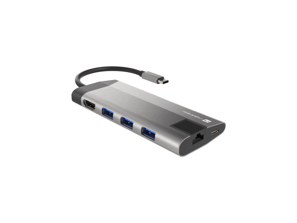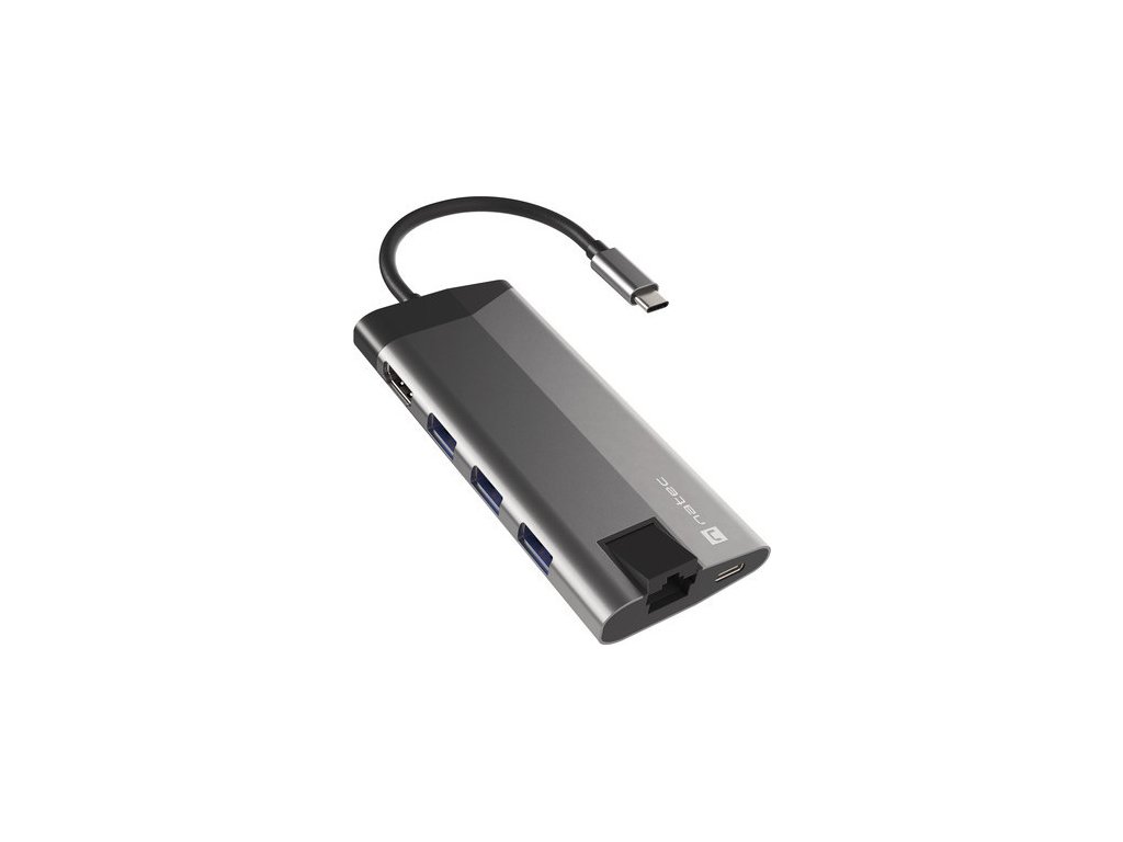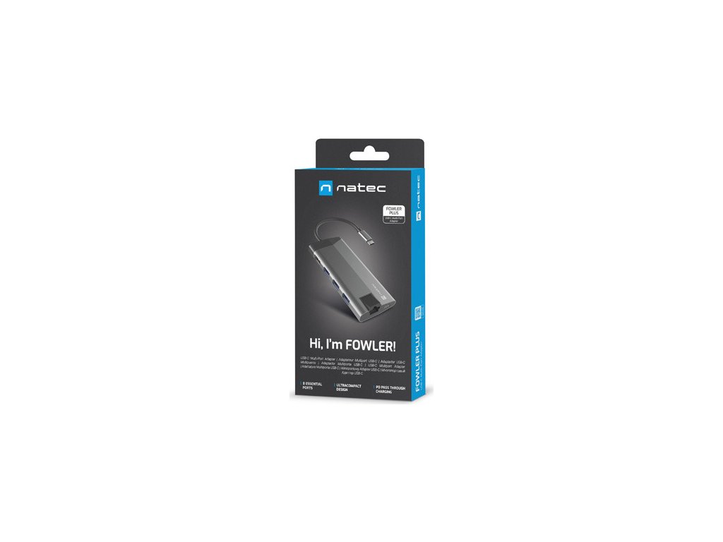 Natec multiport adaptér FOWLER PLUS HUB 8v1, USB 3.0 3X, HDMI 4K, USB-C PD, RJ45, SD, MICRO