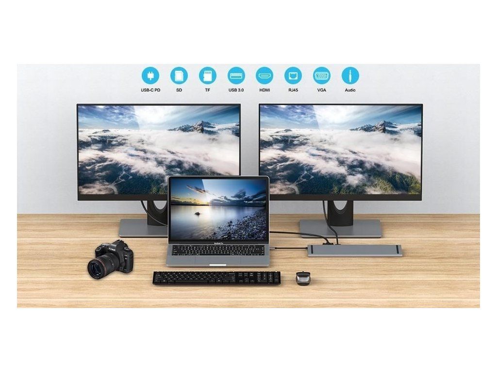 Umožní pridať ďalší monitor a USB perifériu alebo pamäť a súčasne nabíjať cez konektor PD. Umožňuje tiež pracovať na viacerých obrazovkách naraz.