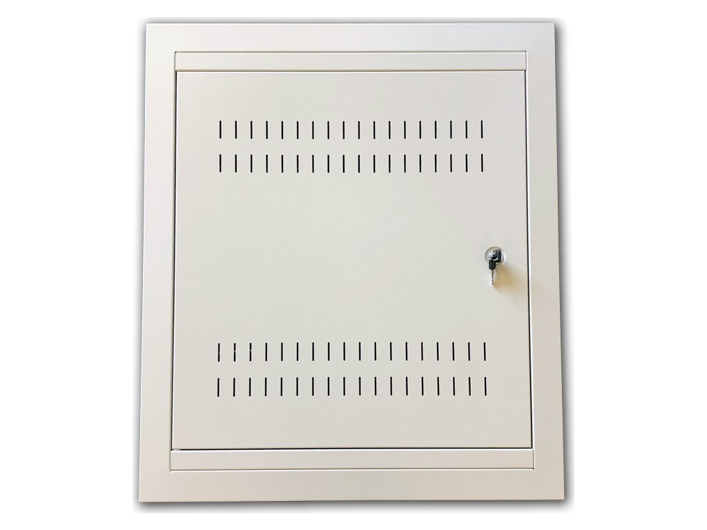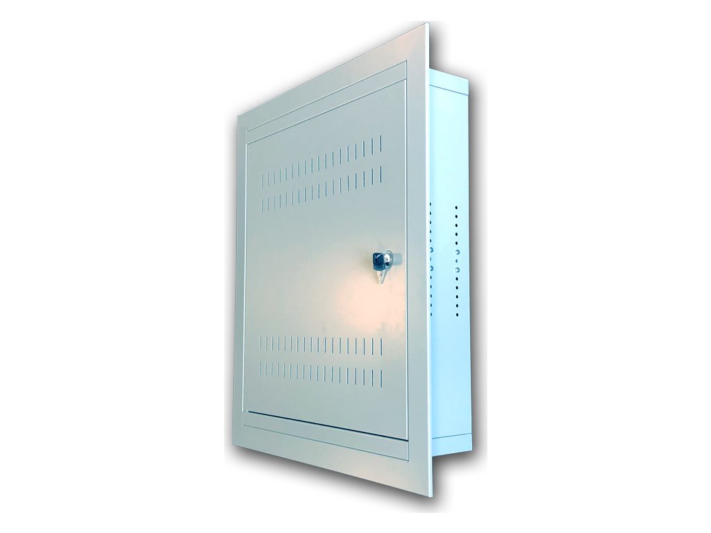 Datacom 19" rozvaděč pod omítku 4U+2U/150mm (plech) Nástěnná rozvaděčová datová skříň 4U vodorovně + 2U svisle je vyráběna pouze v jedné rozměrové variantě o rozměrech: vnější výška s rámem (bez rámu): 770 mm (670 mm) vnější šířka s rámem (bez rámu): 670 mm (570 mm) vnější hloubka s rámem (bez rámu): 150 mm (150 mm) Polohovatelné uchycení lišt: - Vertikální lišta 4U (pro umístění komponent ve vodorovné poloze): 110 mm od vertikální lišty 4U k zadní stěně rozvaděče, vertikální lišty lze přemístit kdekoliv v celé výšce rozvaděče. - Horizontální lišta 2U (pro umístění komponent ve svislé poloze): 350 mm (+-80mm) od horizontální lišty 2U ke dnu rozvaděče!!! Změna polohy horizontální lišty 2U je možná pouze před zaomítáním rozvaděče !!! - Tato datová skříň je určena jako rozvaděč pro instalaci prvků strukturovaných kabeláží a prvků telekomunikačních rozvodů. Vlastnosti: - vlastní odvětrávací otvory ve dveřích rozvaděče- skříň tvořena svařovaným skeletem, polohovatelné pozice vertikálních lišt Upozornění: svisle umístěné vertikální lišty 2U lze polohovat pouze před zabudováním rozvaděče- z čelní strany je rozvaděč osazen plechovými perforovanými dveřmi se dvěma panty- lehce nastavitelné levé/pravé otevírání- kovový zámek na klíč s jednobodovým zamykáním- v zadní části jsou 4 otvory pro případné uchycení na v SDK stěně /rozteč 10mm otvorů - 58,5mm x 400mm/- horní a spodní vylamovací průchody pro kabeláž /260x50mm/- před instalací do zdi možno odmontovat záda rozvaděče (rozměr odnímatelných zad 610x500mm), získáte tím větší hloubku pro instalaci. - IP krytí: IP20- povrchová úprava je provedena práškovou technologií- barva šedá