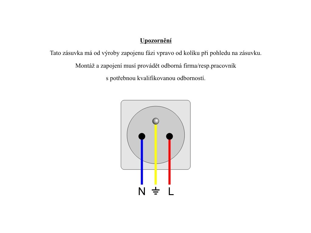Tato zásuvka má od výroby zapojenu fázi vpravo od kolíku při čelním pohledu na zásuvku.