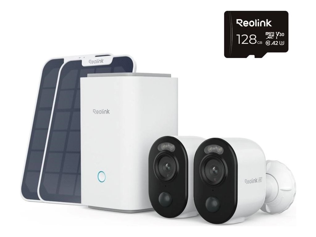 REOLINK Home Hub, 2x Argus Series B350 + 2x Solar Panel + 128GB microSD karta