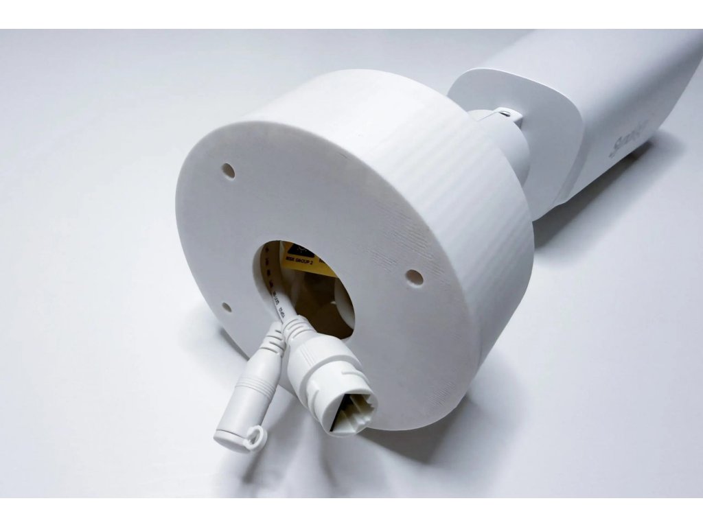 Plastový držiak je určený na upevnenie kamery Synology BC800Z na stenu alebo strop a to pomocou troch skrutiek. Držiak je vyrobený z PETG materiálu na 3D tlačiarskej tlačiarni, má bielu farbu.