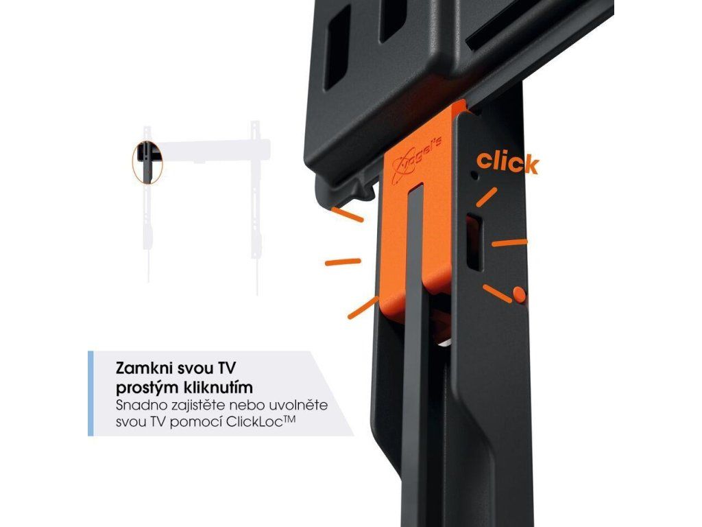 Z televízora, ktorý je štýlovo a bezpečne pripevnený na stene, budete mať väčší pôžitok. A presne to získate s týmto nástenným držiakom série COMFORT Tilt. Bezstarostné sledovanie pre celú rodinu. Vďaka jedinečnému bezpečnostnému systému ClickLoc™ môžete televízor ľahko zamknúť k nástennému držiaku. Počuteľné zaklapnutie vám potvrdí, že je televízor bezpečne zabezpečený na svojom mieste. Na nástennom držiaku sú tiež mäkké podložky. Tie zabraňujú poškriabaniu zadnej strany televízora pri jeho montáži.