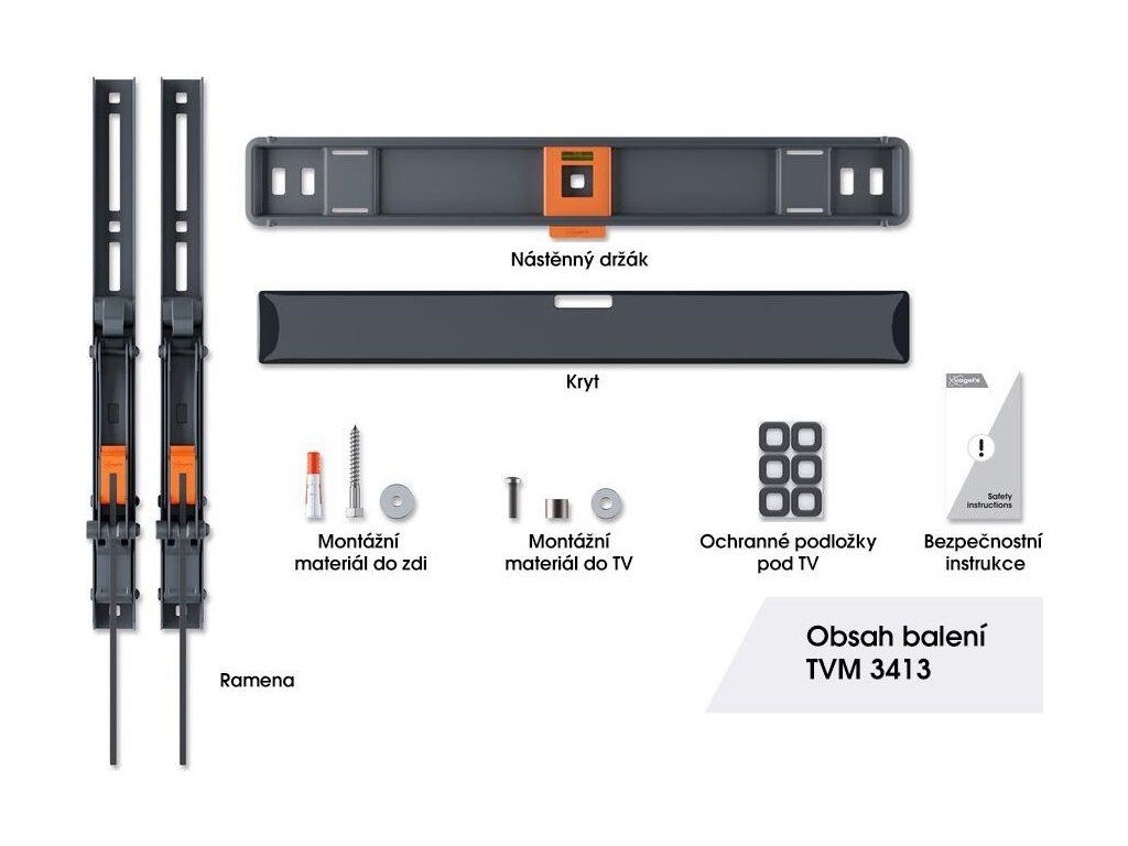 Nástenný držiak TVM3413 je ideálny, ak chcete televízor umiestniť o niečo vyššie na stenu, napríklad v spálni. Váš televízor bude namontovaný štýlovo a bezpečne. A obrazovku môžete nakloniť až o 20° a vytvoriť si tak pohodlný pozorovací uhol. Nástenný držiak je vhodný pre televízory s uhlopriečkou od 32 do 65 palcov a hmotnosťou do 25 kg.