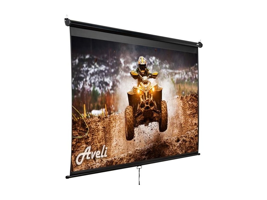 Nástěnné projekční plátno AVELI, 204x115cm (16:9) 92", černý tubus