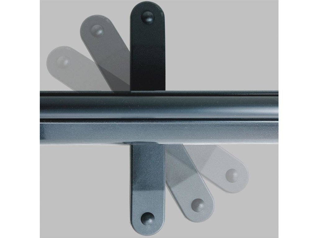 Inovatívny dizajn a bezpečnostné funkcie, ktoré bezpečne uzamknú obrazovku vo vnútri puzdra počas prepravy. Po zdvihnutí opornej tyče sa puzdro automaticky odomkne, čo umožňuje vytiahnutie obrazovky za rukoväť. Po zasunutí obrazovky sa puzdro automaticky uzamkne. Nosná tyč je tiež vybavená jednosmerným patentovaným zámkom, ktorý umožňuje úplné zabezpečenie a jednoduché nastavenie zadnej opory. To vám umožní plynulo upravovať výšku obrazovky. Rukoväť neslúži len na zdvíhanie a vytiahnutie oddeľovacej obrazovky z puzdra, ale aj na jej upevnenie k nosnej tyči, aby sa oddeľovač nezosypal alebo nepohol.
