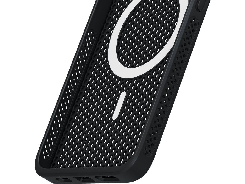 Predstavujeme 3mk COOLing MagCase™ — puzdro, ktoré nielen chráni váš telefón, ale tiež podporuje jeho prirodzený odvod tepla. Naše puzdro sa vyznačuje jedinečným prolamovaným dizajnom, ktorý umožňuje lepšie prúdenie vzduchu. Aj bez pridavných chladiacich prvkov si telefón udrží nižšiu teplotu dlhšie ako pri použití plného puzdra alebo sa najmä pri intenzívnom používaní zahrieva na podobnú úroveň ako bez púzdra.