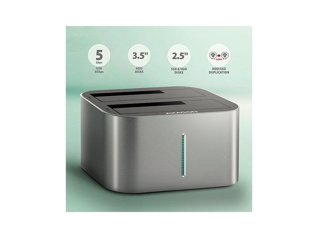 AXAGON ADSA-DC, USB-C 5Gbps - 2x SATA 6G 2.5"/3.5" SSD/HDD CLONE DUAL dokovací stanice