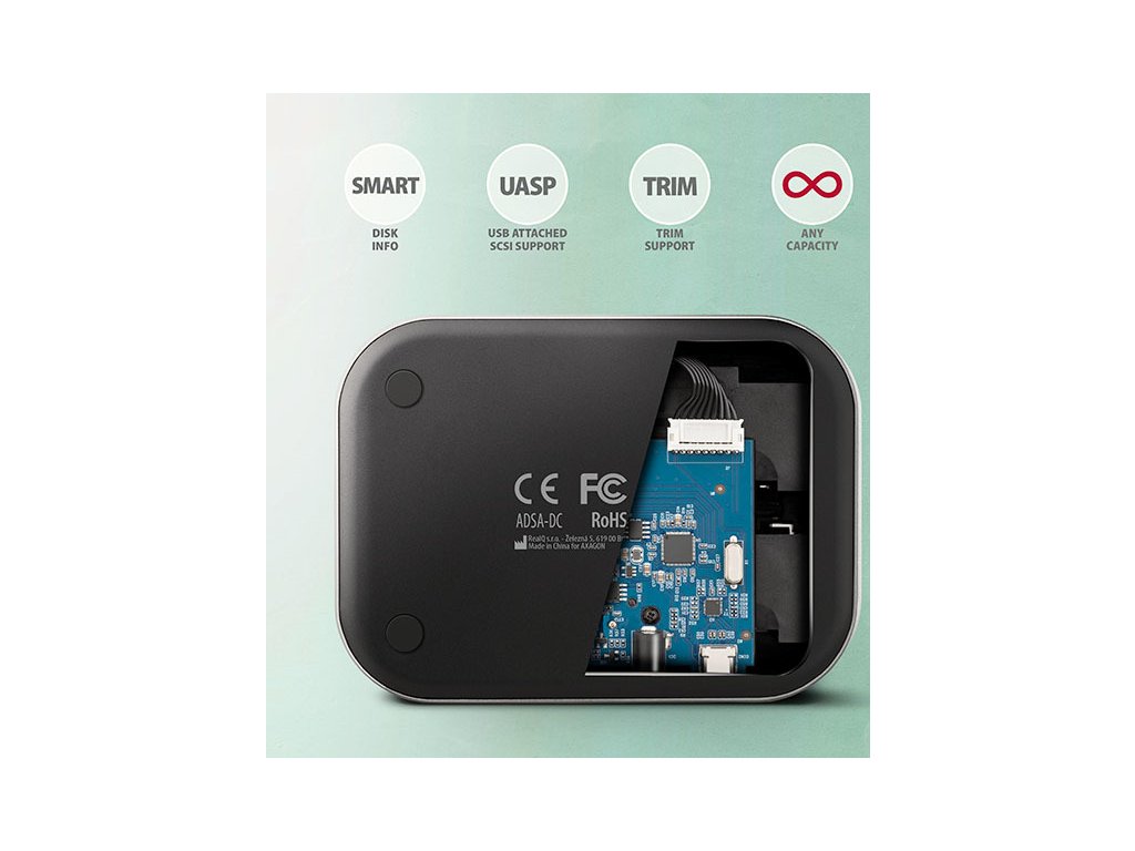 Rozhranie SATA 6G s podporou UASP vám umožní vychutnať si rýchlosť moderných SSD. Podpora funkcie TRIM na obmedzenie postupného znižovania výkonu SSD v priebehu času. Stanica umožňuje čítanie informácií S.M.A.R.T. monitorovanie stavu HDD/SSD. Podporuje režim spánku pripojených diskov a stanice.