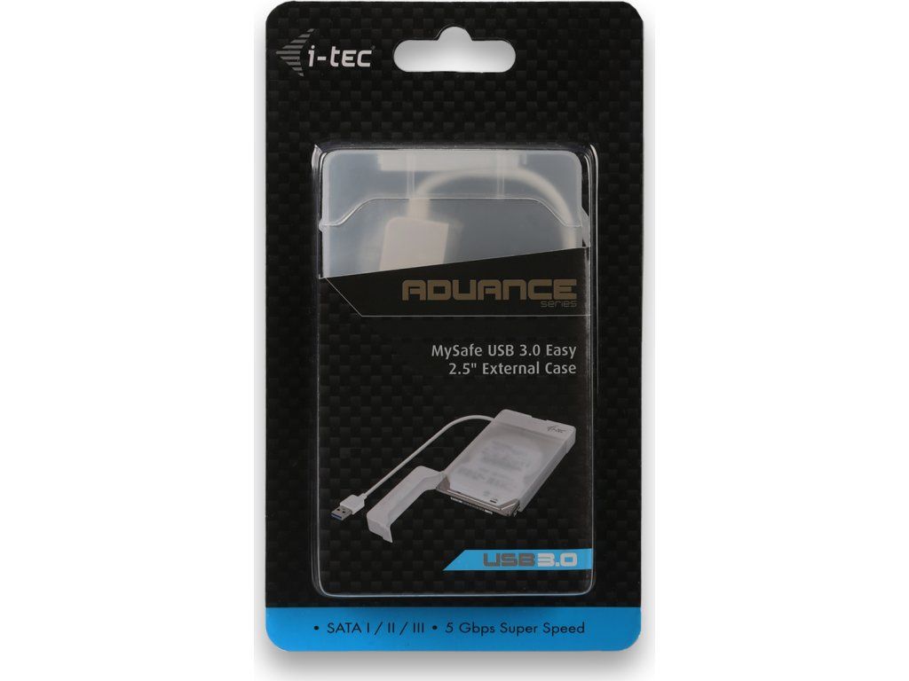 i-tec MySafe USB 3.0 Easy je externý rám pre pripojenie 2.5" disky SATA všetkých kapacít k počítaču, notebooku, televízoru alebo inému multimediálnemu zariadeniu prostredníctvom rozhrania USB, ktoré je zároveň napájané. Rám je vhodný aj na presun údajov z poškodeného notebooku. Pripojenie cez USB 3.0 ponúka rýchly a jednoduchý prenos dát (až 5 Gb/s). Spätná kompatibilita s USB 2 je samozrejmosťou.0.