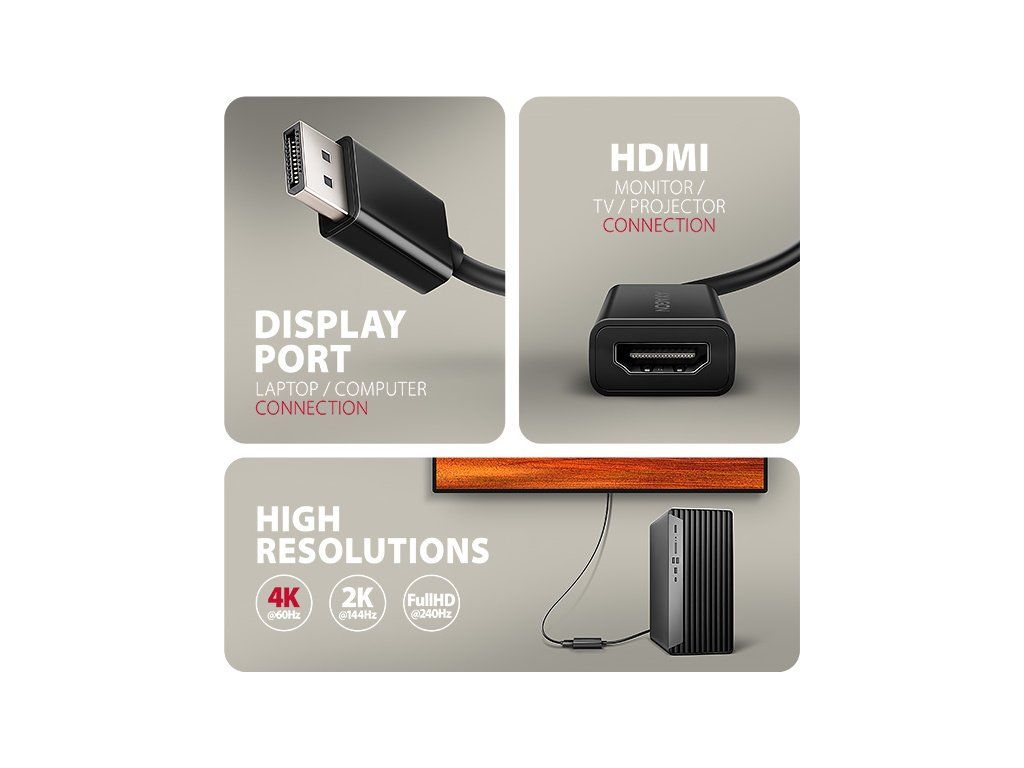 • DisplayPort > HDMI video adaptér s káblom dĺžky 15 cm,