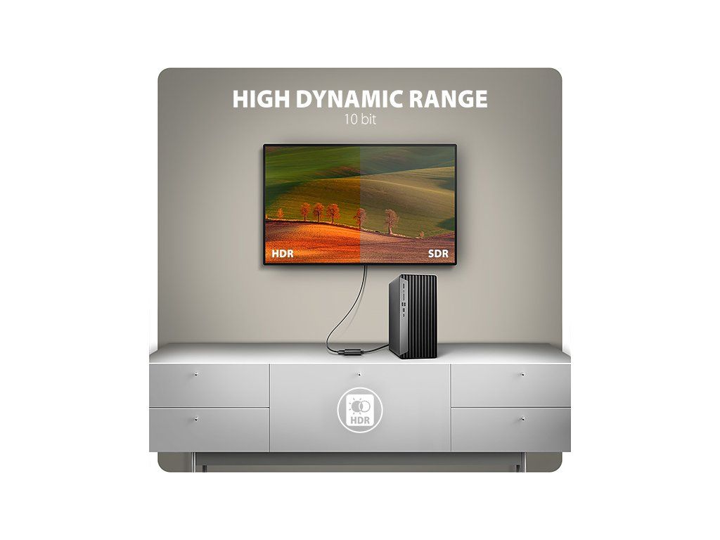 Malý hardvérový prevodník bez potreby akýchkoľvek inštalácií zabezpečí kvalitný obraz až do rozlíšenia 4K/60 Hz Ultra HD. Sú podporované aj obľúbené rozlíšenia 2K/144 Hz Quad HD alebo 1080p/240 Hz Full HD. Vďaka podpore HDR (vysoce dynamický rozsah) si môžete bez obmedzení vychutnať výrazne rozšírený rozsah farieb a kontrastov.