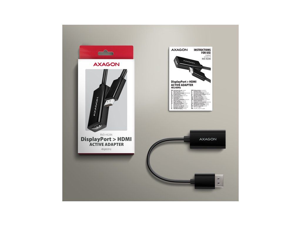 DisplayPort -> HDMI aktívny adaptér - zníženie AXAGON RVD-HI20N pre pripojenie HDMI monitoru/TV/promítacej súpravy k počítaču s výstupom DisplayPort. Vďaka tejto znížene môžete ľahko využiť svoj existujúci HDMI kábel bez nutnosti ďalších väčších investícií.