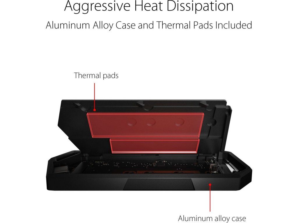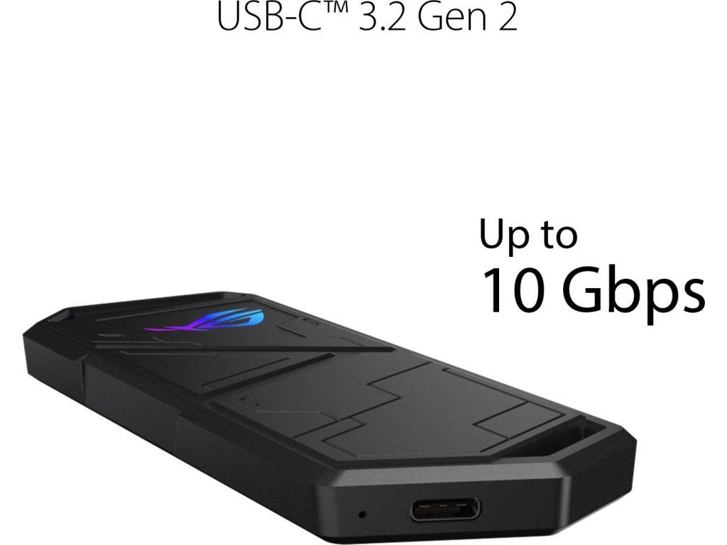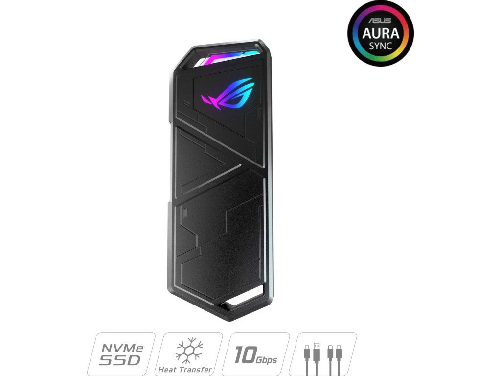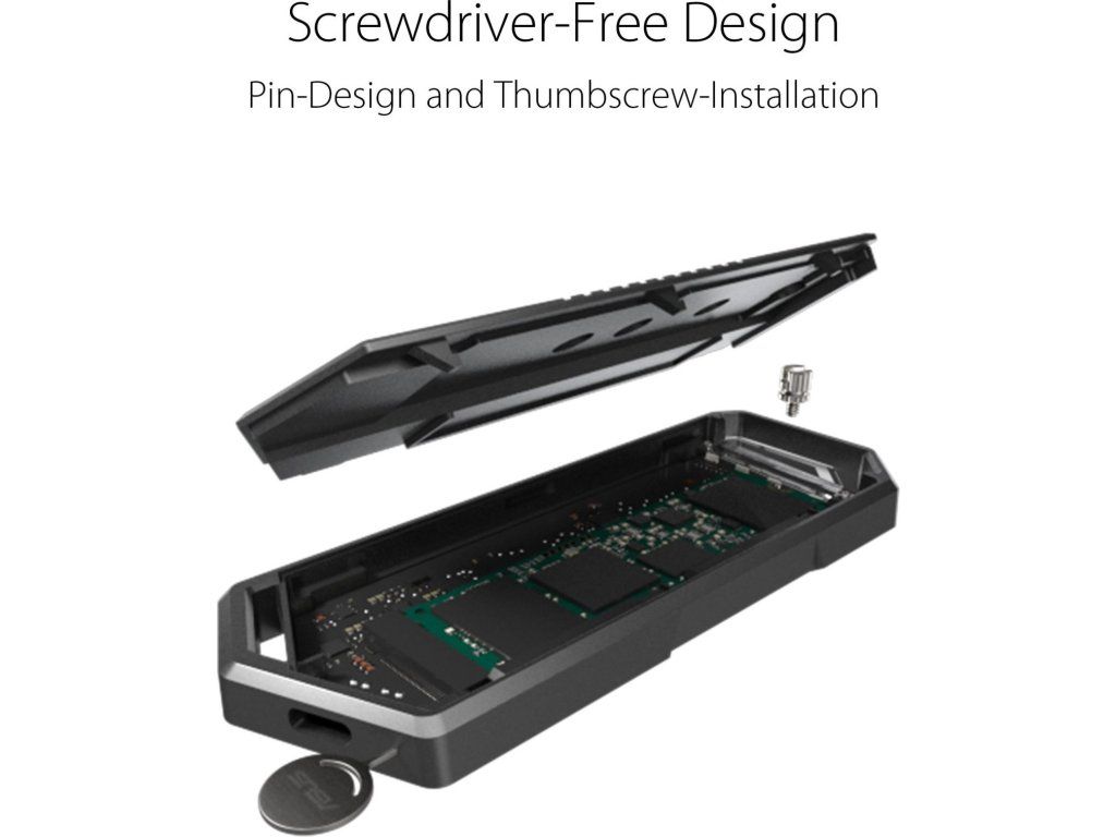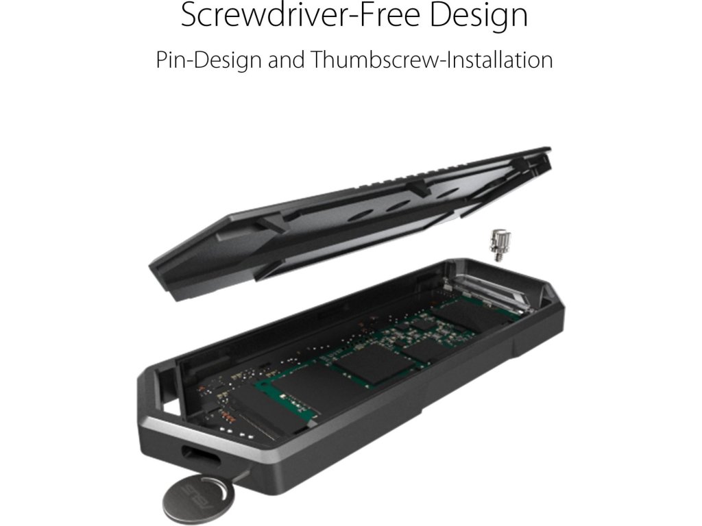 Box na externé disky M.2 NVMe SSD ROG Strix Arion - USB 3.2 GEN2 Type-C (10 Gb/s), dva káble USB-C do USB-C a USB-A, inštalácia bez použitia skrutkovača, obsahuje chladovacie podložky, vhodný pre PCIe 2280/2260/2242/2230 M key/B+M Key