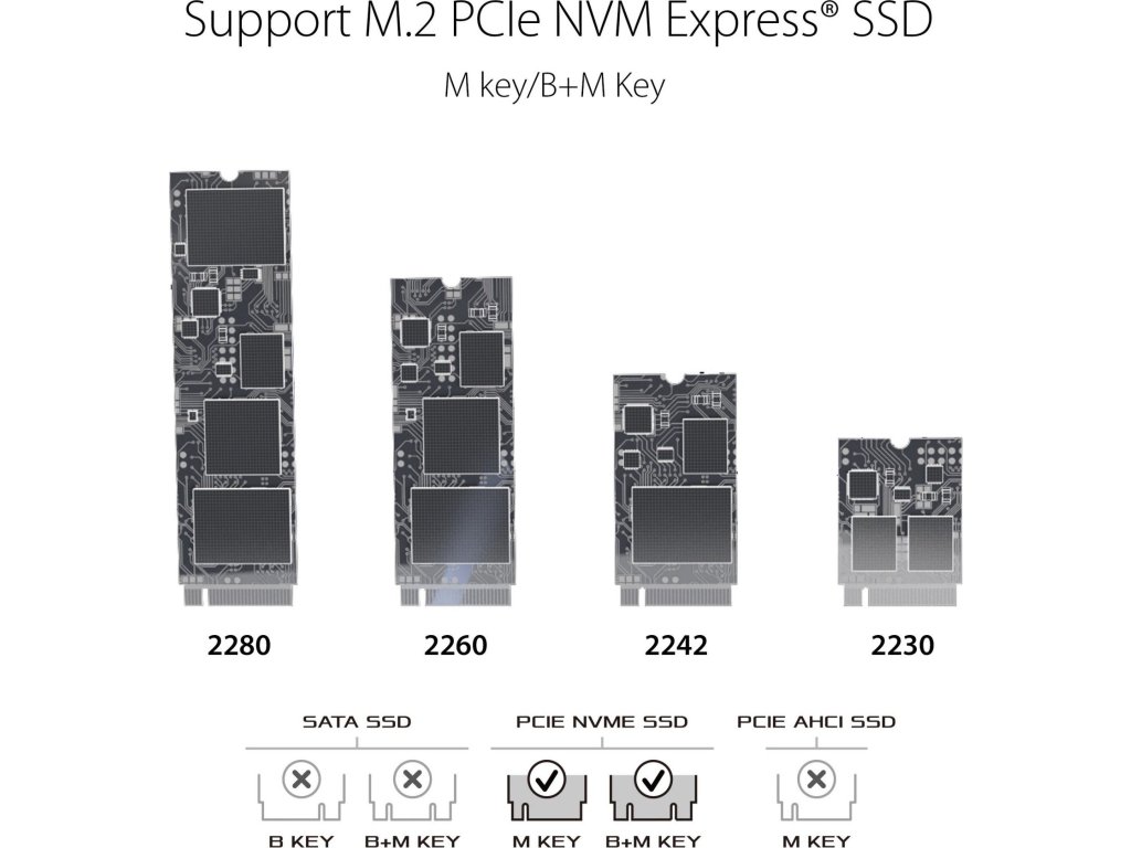 - Podporuje SSD M.2 PCIe NVM Express formátu 2230/2242/2260/2280