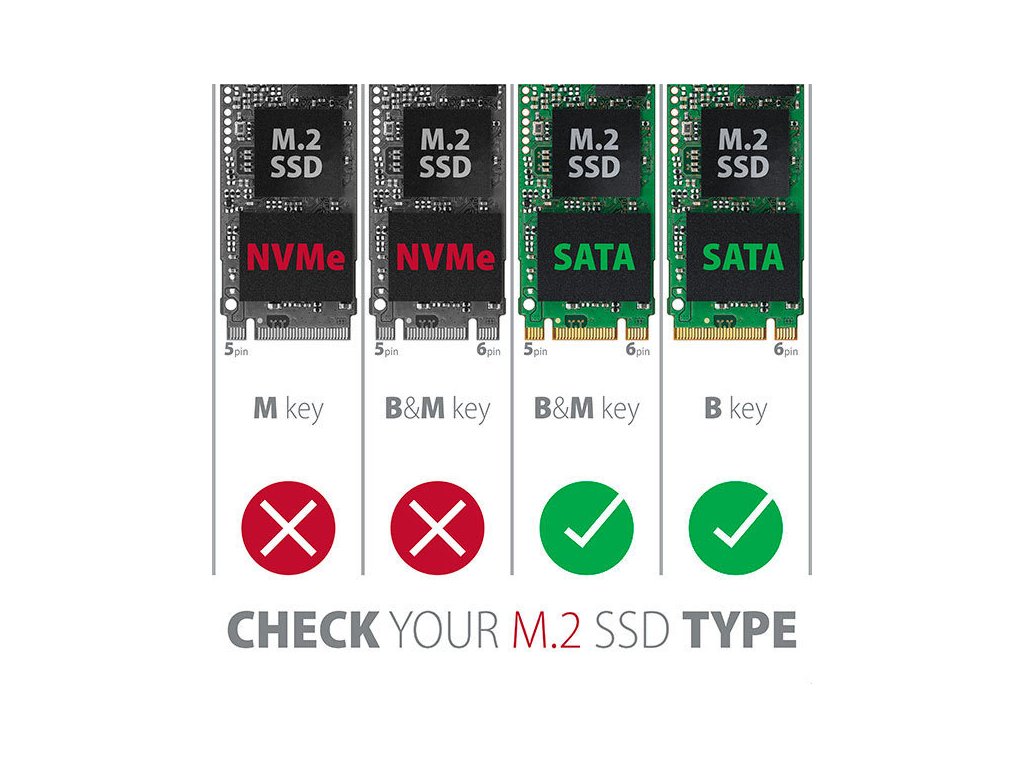 Do boxu je možné použiť SATA M.2 SSD disky až do rozmeru 22x80 mm. Box nemá obmedzenia kapacity SSD diskov a vkladané M.2 SSD karty môžu byť jednostranné alebo obojstranné.