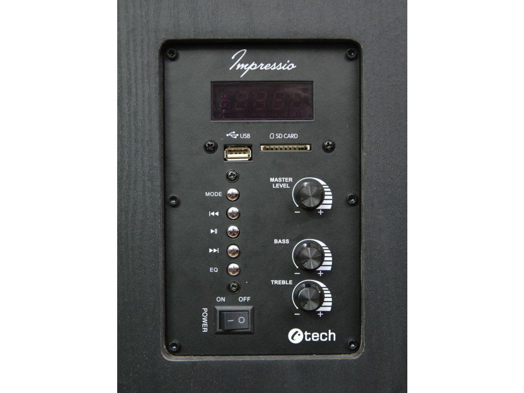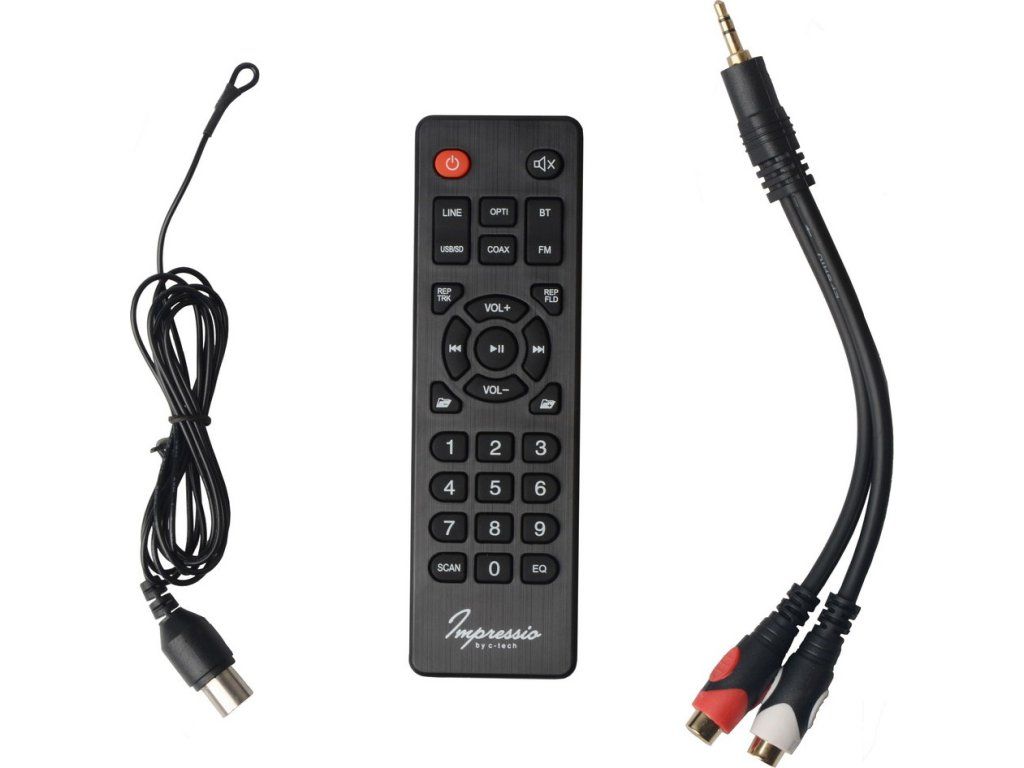V pohodlí Vašeho obývacího pokoje asi nebudete sedět přímo u reproduktoru, proto budete častěji k jeho ovládání používat dodaný dálkový ovladač. Ten zvládne většinu funkcí, jako je: upravení hlasitosti, volba skladby nebo FM stanice, spuštění a přerušení přehrávání, nebo volbu zdroje zvuku mezi Bluetooth, FM rádiem, pamětí USB, nebo SD kartou a LINE-IN vstupem, optickým a koaxiálním vstupem.