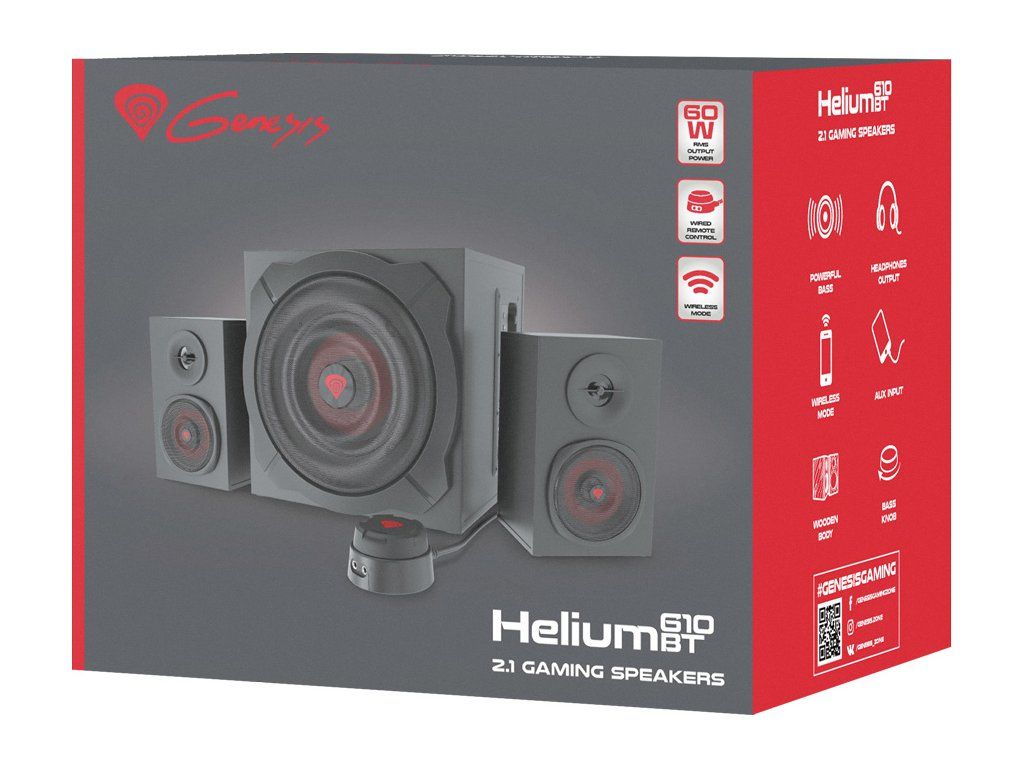Reproduktory Genesis Helium 610BT se řadí do aktivních reproduktorových sestav 2.1. Tento model zůstal přizpůsoben potřebám hráčů, ale určitě nezklame ani při sledování filmů, či poslechu hudby.