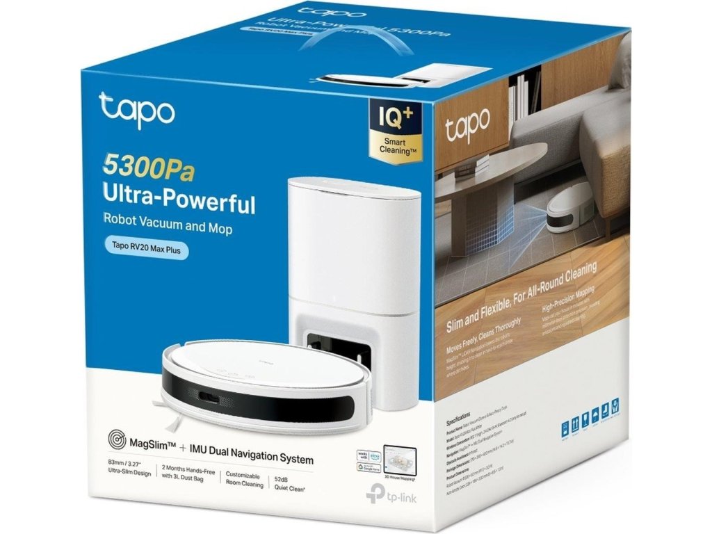 TP-Link Tapo RV20 Max Plus robotický vysavač s mopem a stanicí (LiDAR, 2,4 GHz, BT, bílý)