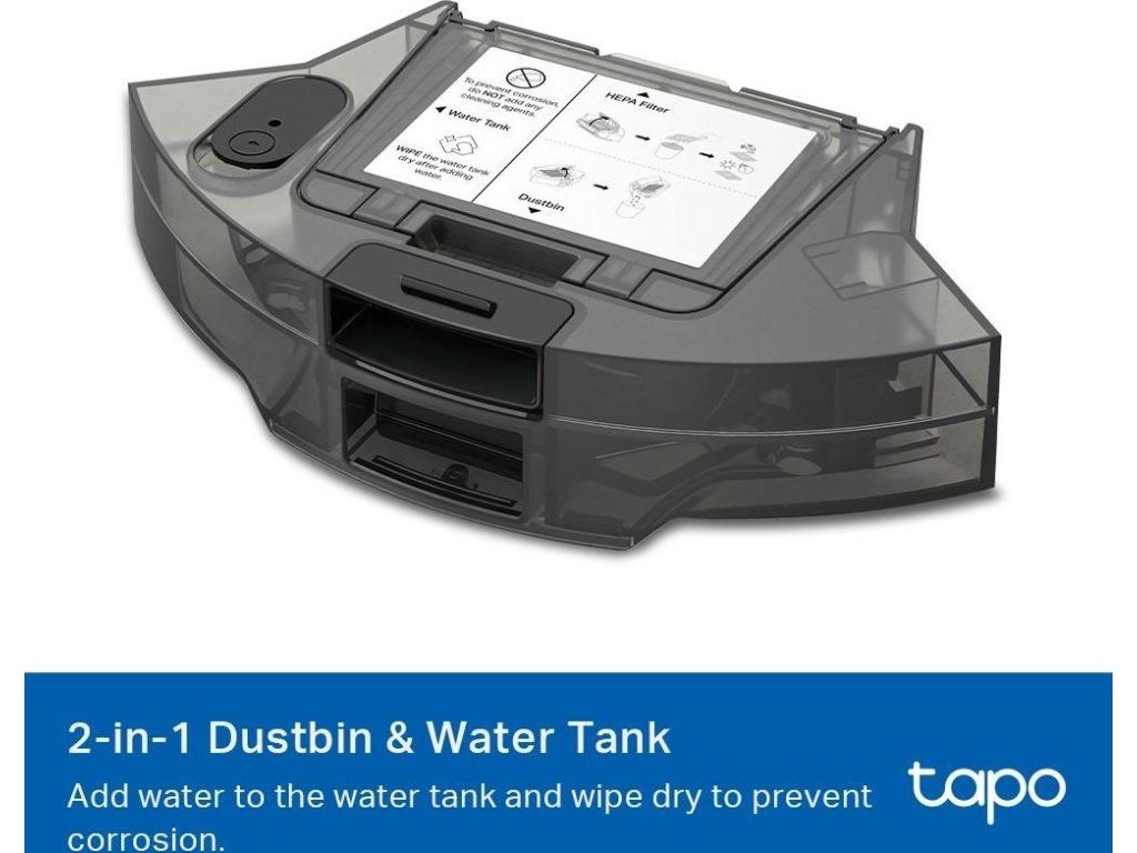 * Originální 2v1 nádoba na prach a vodu pro robotické vysavače Tapo spojuje sběr nečistot a mokré vytírání v jednom kompaktním modulu.