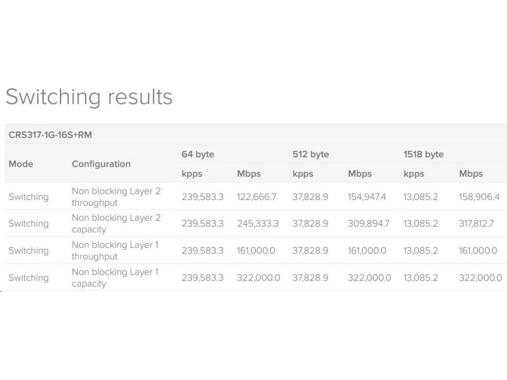 CRS317-1G-16S+RM je poháňaný novou generáciou čipov, ktorá poskytuje dostatočne vysoký výkon pre všetkých šestnásť portov 10G pri použití s ľubovoľnou veľkosťou ethernetového rámca. Nové funkcie, ako napríklad hardvérový protokol spanning-tree alebo Link Aggregation (LACP), poskytnú vašej sieti dostatočnú ochranu, spoľahlivosť a zvýšia jej úroveň na skutočne profesionálnu úroveň.