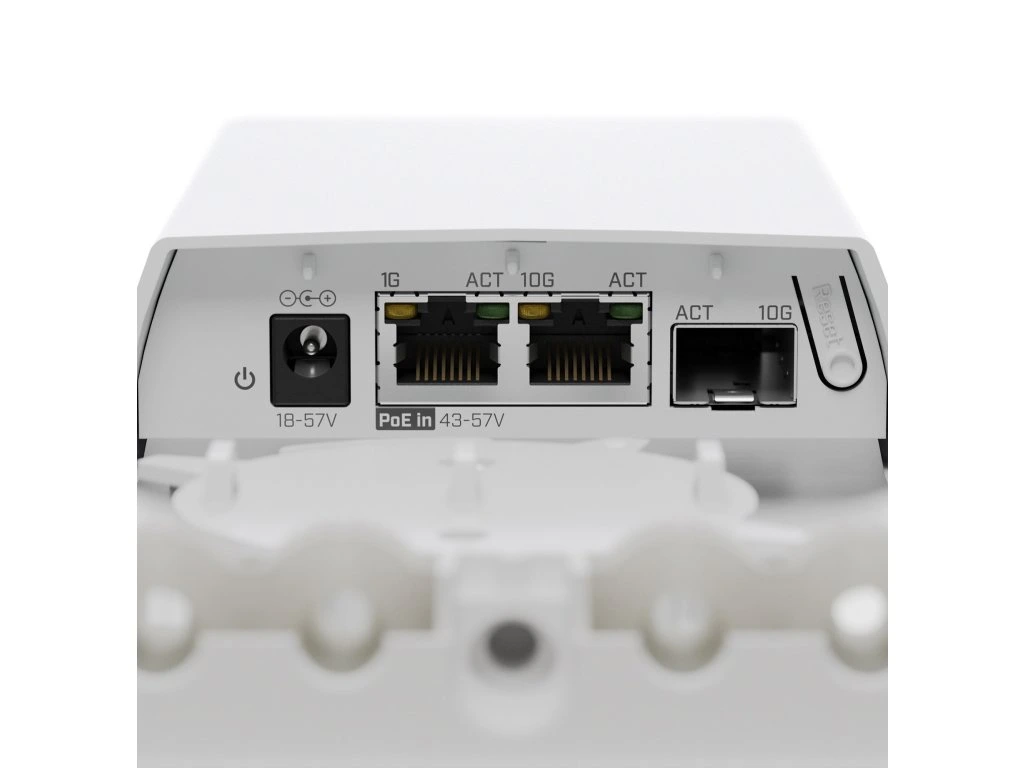 FTC11XG je 10Gbps opticko-metalický konvertor s implementovaným switch-chipem, SwOS Lite managementem (podpora VLAN, LAG, IGMP, SNMP, ACL, traffic shaping...) ve venkovním provedení s krytím IP55. Tento konvertor disponuje jedním Gigabitovým LAN portem s podporou PoE-IN napájení, jedním 10 Gbps LAN portem a jedním SFP+ slotem 10 Gbps pro vložení optických modulů. Konvertor lze napájet různýmui způsoby, podporovány jsou strandardy aktivního PoE (802.3af/at/bt), pasivní PoE (43 - 57V) a napájení pomocí DC konektoru s rozpětím napětí 18 až 57 V DC.