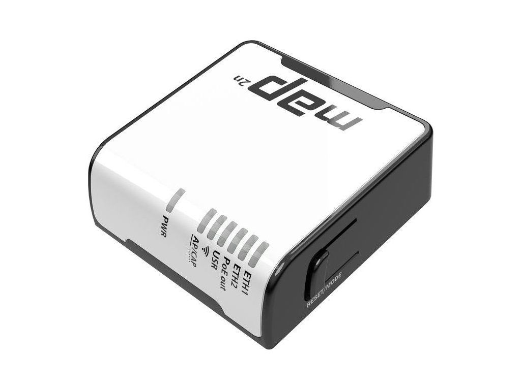 RBmAP2nD je veľmi malý prístupový bod (AP) so všetkými možnosťami systému RouterOS. Veľkou výhodou tohto AP je, že slúži aj ako PoE pre CPE (napr. SXT, eth02 do 500 mA, výstupné napätie zodpovedá vstupnému napätiu). Podporované je aj PoE (pasívne 10-57 V alebo aktívne 802.3af/at) je k dispozícii aj konektor napájania. Integrovaná WiFi teraz podporuje duálne reťazenie a pracuje v pásme 2.4GHz a podporuje 802.11b/g/n. K dispozícii je aj konektor microUSB na pripojenie modemu 3G/4G (konektor microUSB môže slúžiť aj ako zdroj vstupného napätia).