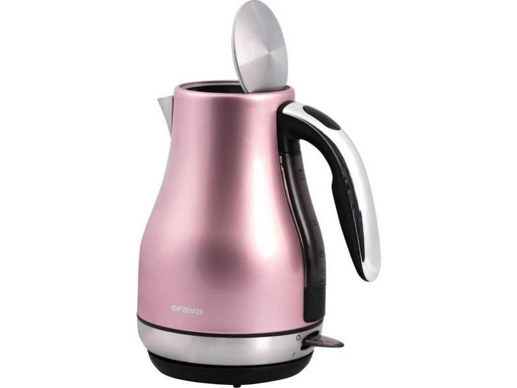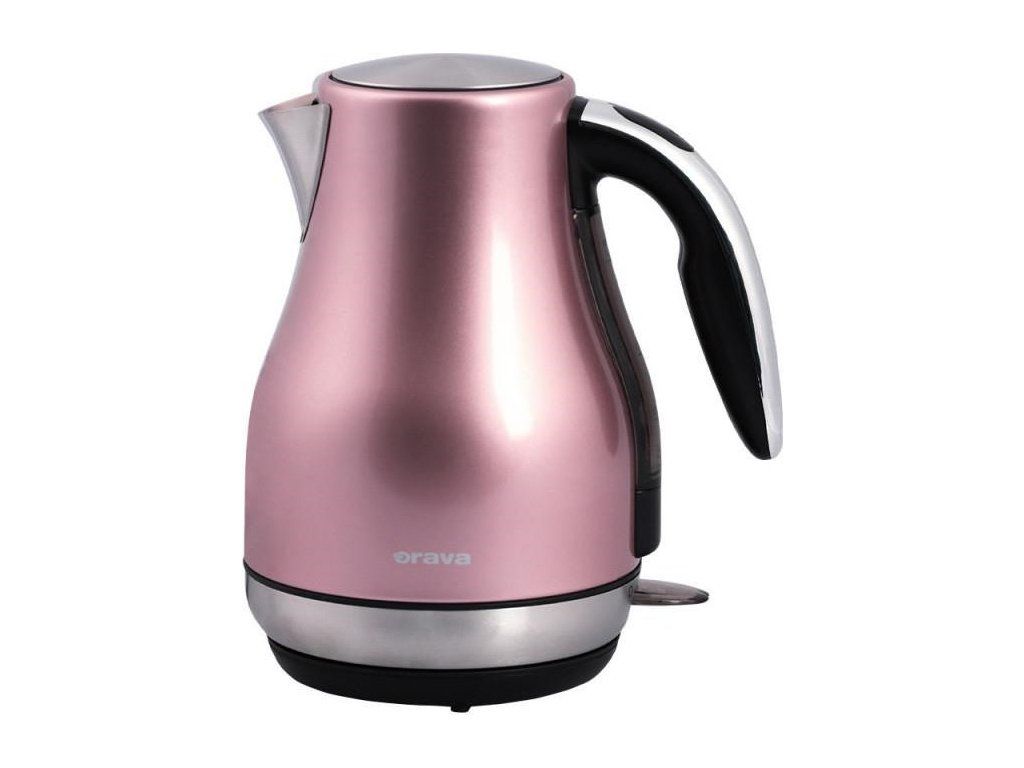 Rýchlovarná kanvica Orava VK-3715 v ružovej farbe . Kanvica je nerezová s objemom 1,7 litra. Veľkou výhodou je, že voda uzavretá v nerezovej kanvici je bez zápachu.