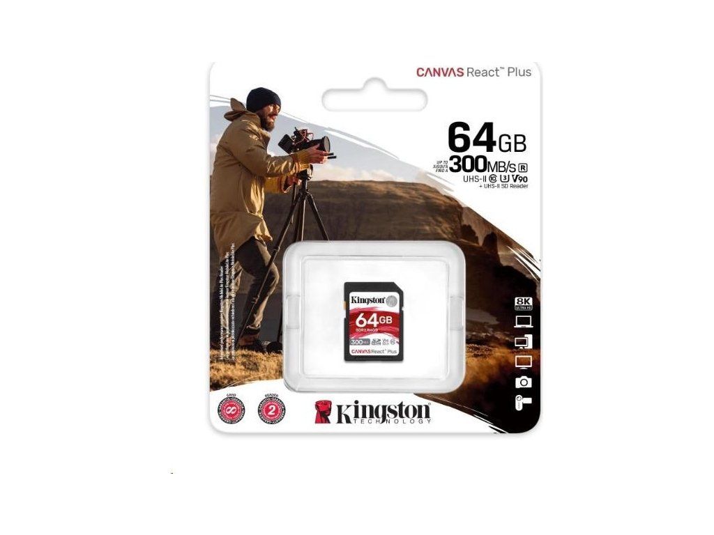 Kingston 64GB Canvas React Plus SDHC UHS-II 300R/260W U3 V90 pre Full HD/4K/8K