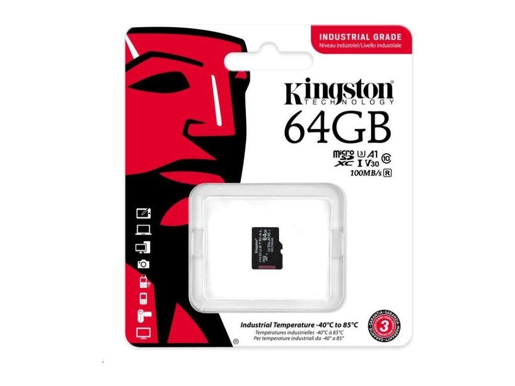 Kingston 64GB microSDXC Industrial C10 A1 pSLC karta v jednom balení