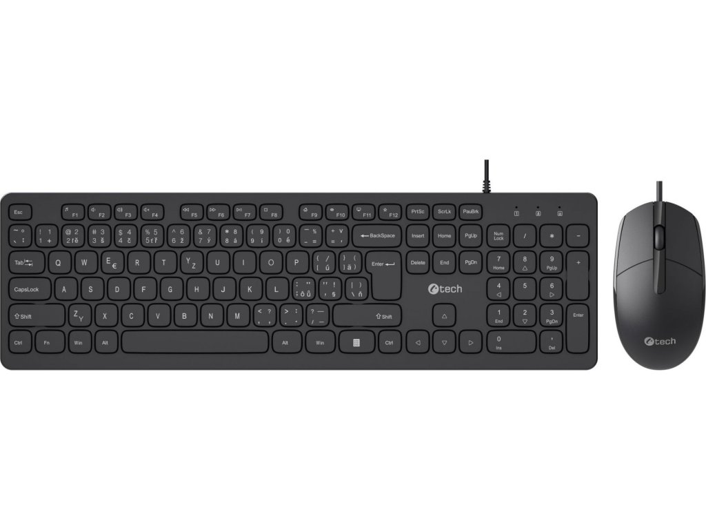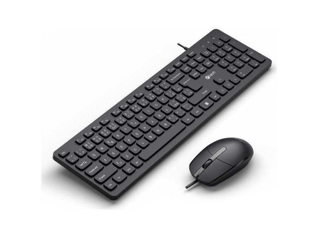 C-TECH Klávesnice KBM-105, drátový combo set s myší, USB, CZ/SK