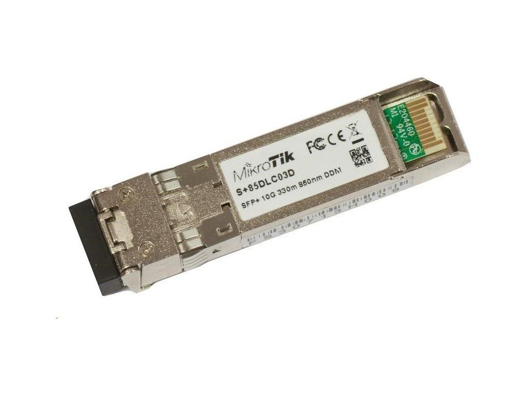 S+85DLC03D je 10Gb/s modul SFP+ s konektorom LC, pracuje s vlnovými dĺžkami 850 nm, je určený pre viacmódové vlákna (MM), použitie do 300 m. Moduly sú testované a výrobca zaručuje úplnú kompatibilitu s produktmi CCR1036-8G-2S+ a CCR1036-8G-2S+EM. Moduly sú kompatibilné aj s produktmi iných výrobcov.