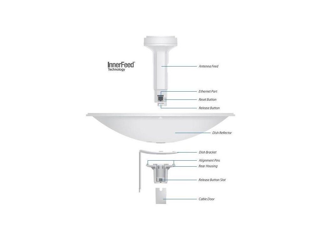 InnerFeed™ technologie integruje rádiovou část do zářiče od antény čímž odpadá potenciální ztráta na RF kabelu.