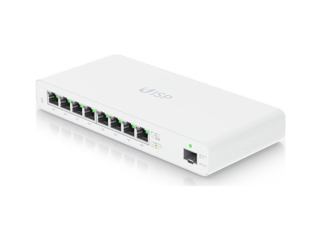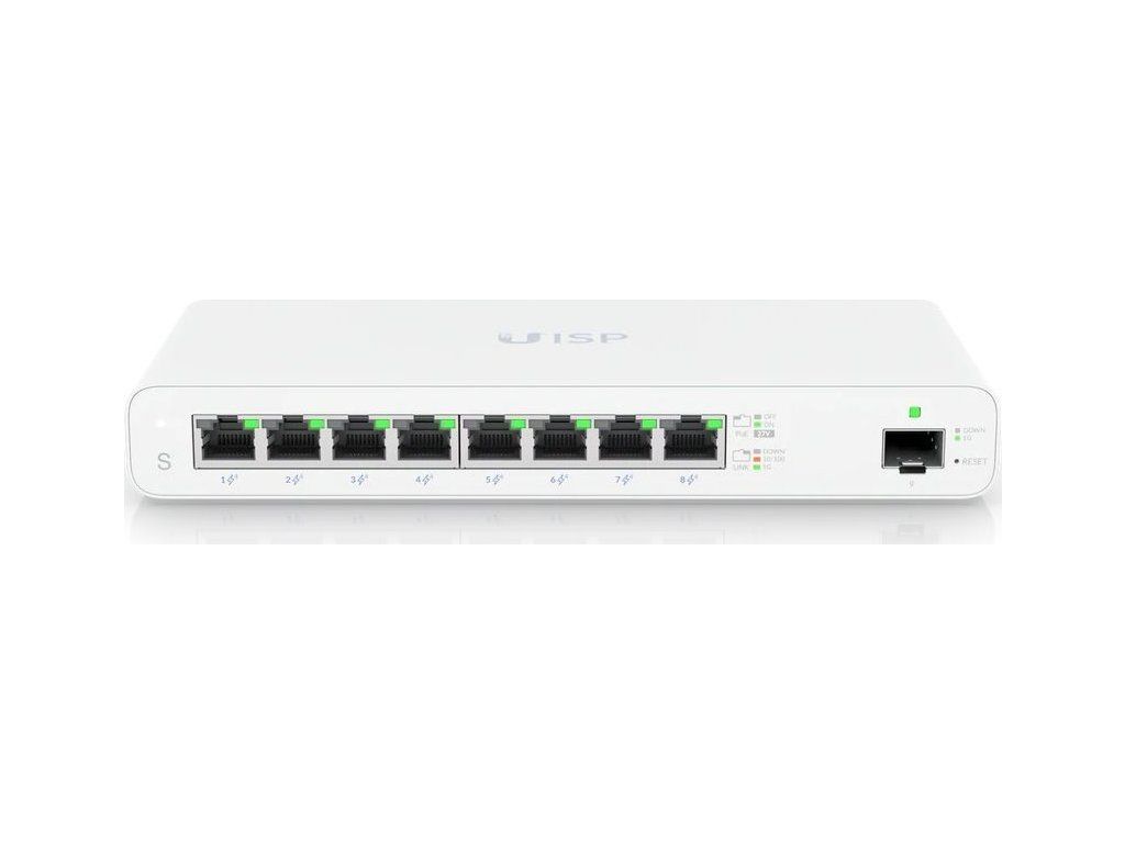 UISP Switch je osazen osmi GbE PoE RJ-45 a jedním GbE SFP slotem pro uplink.