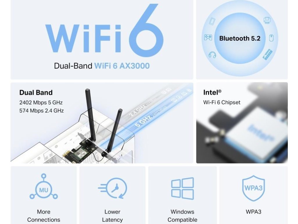 AX3000 Wi-Fi 6 Bluetooth 5.2 PCIe Adaptér