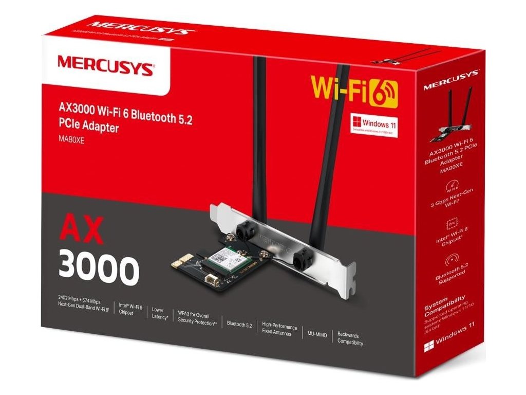 MERCUSYS MA80XE WiFi6E PCIe adapter (AX3000,2,4GHz/5GHz,Bluetooth5.2)