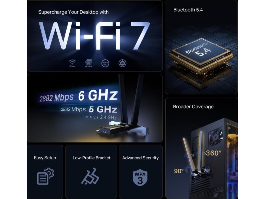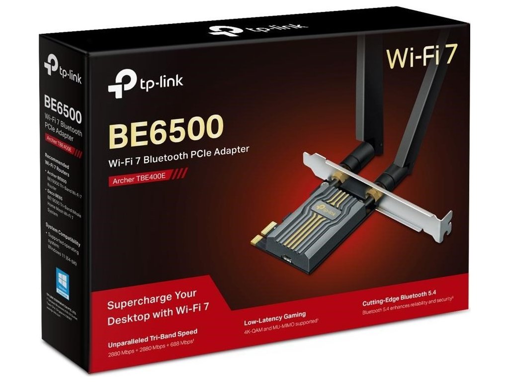 TP-Link Archer TBE400E WiFi7 PCIe adapter (BE6500,2,4GHz/5GHz/6GHz,Bluetooth5.4)
