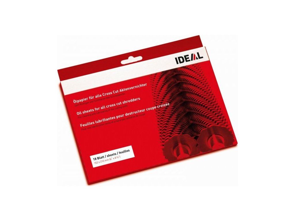 Na čistenie a údržbu skartovacieho mechanizmu, vhodné najmä pre stroje s priečnym rezom. Predlžuje životnosť stroja a udržuje optimálny výkon mechanizmu. Jednoduchým skartovaním sa na kovové časti skartovacích valcov nanesie špeciálny olej. Olej je uzavretý v papierovom vrecku a vytečie len pri skartovaní. Balenie obsahuje 18 listov formátu A5..