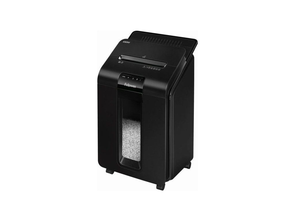 Základný model v rade automatických skartovačov Fellowes. Stačí ho naložiť, zapnúť a vyraziť. Automatická skartovačka vám ušetrí čas strávený vkladaním skartovaných papierov. Zariadenie je schopné skartovať až 100 listov 70g papiera za pracovný cyklus v krížovom minireze 4 × 10 mm s automatickým podávaním. Objem koša 23 l. Skartovač je vybavený vstupným otvorom na ručné podávanie až 10 listov papiera. Rezací mechanizmus spracováva zošité papiere a kreditné karty počas ručného podávania. Rolovacie kolieska. Ovládanie zabezpečuje dotykový panel s LED podsvietením. Samozrejme, je tu indikácia prehriatia, plný odpadkový kôš. Dĺžka nepretržitého pracovného cyklu 15 min. Automatický systém ochrany proti prehriatiu. Rezacie nože zo špeciálnej kalenej ocele, výkonný motor a robustné prevodové komponenty predurčujú AutoMax na dlhodobé a bezproblémové používanie. V prípade nečinnosti dlhšej ako 2 minúty sa zariadenie automaticky vypne - "režim spánku", čím sa šetrí spotreba elektrickej energie. energie. Určené predovšetkým pre jedného používateľa. Objem koša 23 litrov, výsuvná nádoba na odpad vo vnútri pre jednoduchú manipuláciu. Rozmery (Š x H x V) 370 × 330 × 640 mm, hmotnosť 13,2 kg, napájanie 230-240 V/50 Hz..