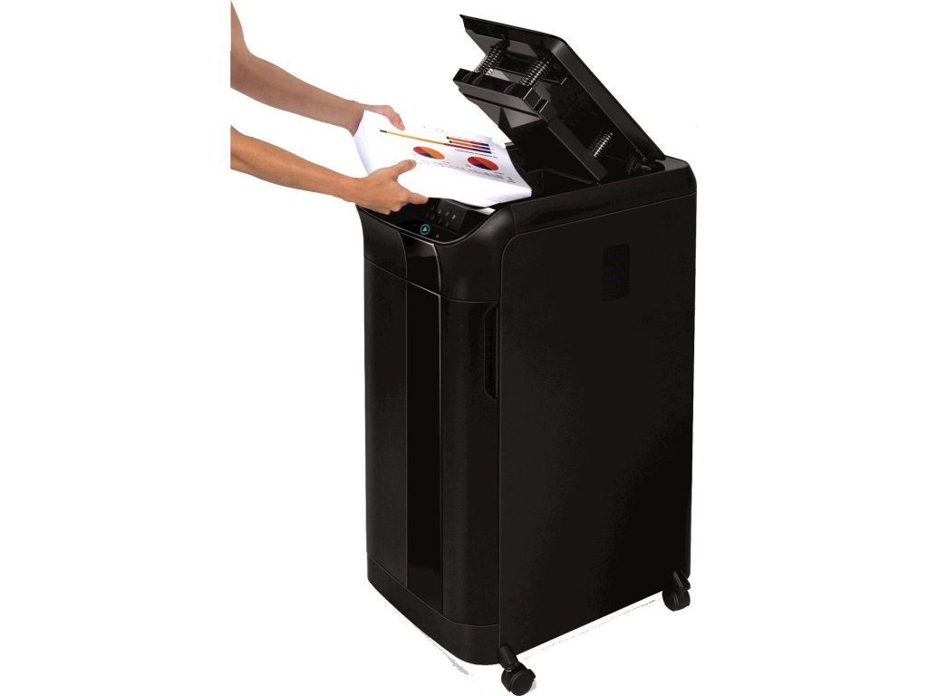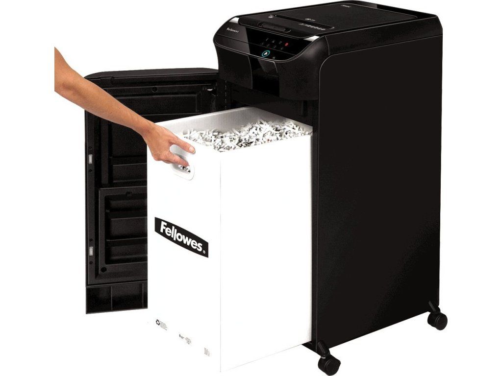 Ideálnym riešením automatickej skartácie papiera pre kancelárie s viacerými (viac ako 5) používateľmi je druhá generácia osvedčeného modelu AutoMax. Presvedčí vás o tom svetový líder v oblasti skartovacích technológií, spoločnosť Fellowes. Automatická skartovačka vám umožní vykonávať užitočnejšie kancelárske činnosti, než je vkladanie papiera do bežnej skartovačky. AutoMax 550 C dokáže skartovať až 550 listov 70g papiera v krížovom reze 4 × 38 mm zo zásobníka počas jedného pracovného cyklu. Je určený na nepretržitú prevádzku. Skartovač je vybavený vstupným otvorom na alternatívne ručné podávanie až 14 listov papiera súčasne. Technológia AutoFeed zabezpečuje automatické podávanie listov papiera zo zásobníka. Zásobník možno použiť na skartovanie obyčajného papiera, zošívaného alebo zošitého papiera (max. až 20 listov). Systém AutoReverse - zabezpečuje prerušenie skartovania a krátky spätný chod pri zaseknutí podávača papiera. Skladaný papier, poštové obálky a ich obsah, CD/DVD médiá a kreditné karty sa skartujú cez ručný podávací otvor. Šírka vstupného otvoru 230 mm. Skartovač "SMART LOCK" elektronicky uzamkne dokumenty po vložení štvormiestneho kódu PIN na celý skartovací cyklus. Tým sa zabezpečí, že sa k skartovanému obsahu nedostane nikto iný (ani po odpojení a opätovnom pripojení stroja k napájaniu). siete). Ovládanie zabezpečuje dotykový panel s LED podsvietením. Samozrejmosťou je indikácia prehriatia, otvorených dvierok zásobníka, plného zásobníka a možného kolízneho stavu (ak je na vstupe nežiaduci obsah). Rezacie nože zo špeciálnej kalenej ocele, výkonný motor a kovové prevodové komponenty predurčujú AutoMax na dlhodobé a bezproblémové používanie. Tento model je optimalizovaný na dlhodobú nepretržitú prevádzku pri zachovaní veľmi nízkej hladiny hluku - "SilentShred". V prípade nečinnosti dlhšej ako 2 minúty sa zariadenie automaticky vypne - "režim spánku", čím sa šetrí spotreba elektrickej energie. energie. Jeho kapacita je vhodná pre tímové pracoviská s 5 a viac osobami, ideálne pre "open office", konferenčné miestnosti atď. Približný čas skartovania plného zásobníka je 13-15 minút v závislosti od typu skartovaného materiálu. Objem koša 83 litrov, rozmery (š x h x v) 441 × 578 × 890 mm, hmotnosť 33,6 kg, napájanie 230-240 V/50 Hz..