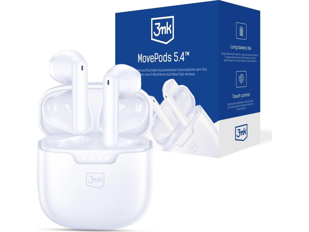3mk bezdrátová stereo sluchátka MovePods 5.4, stereo, nabíjecí pouzdro, bílá