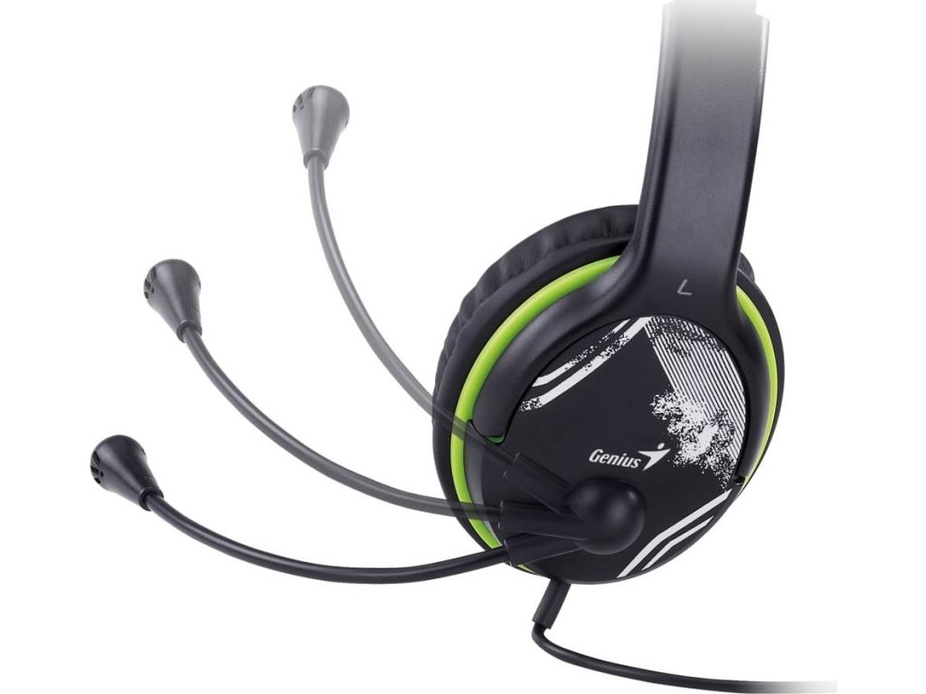 GENIUS sluchátka s mikrofonem HS-400A, černozelená, + redukce na Single Jack
