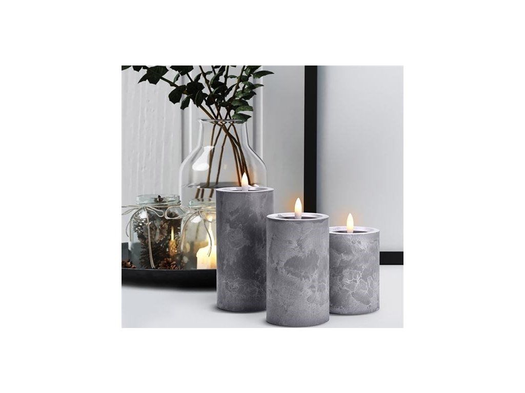 Solight sada LED svíček s časovačem, 3x svíčka, 10/13/15cm, šedá, 2xAA