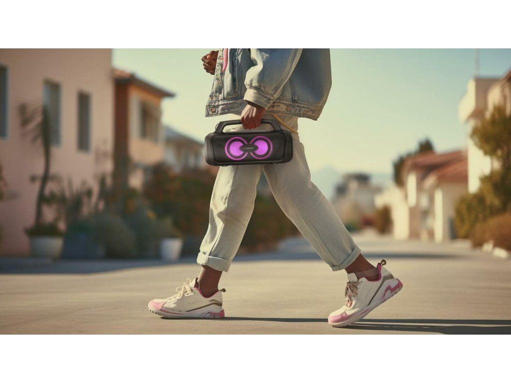 Udávaj tón každej party s prenosným reproduktorom LAMAX PartyGo1 Play. Jeho neveľké telo so šikovným madlom ukrýva značný výkon 50 W. Kdekoľvek si len spomenieš, naservíruje ti silný, plný a bohatý zvuk vďaka technológii BeatBass®. Či už sa jedná o poriadnu párty alebo záhradnú grilovačku, vždy im dodajú ten správny vibe aj 3 režimy LED podsvietenia a pribalený mikrofón, s ktorým si užiješ super karaoke alebo môžeš akciu moderovať. Bluetooth 5.3 zariadi okamžité spárovanie repráku s akýmkoľvek zariadením a istotu bezchybného prenosu až na 18 m. Pripojiť ho možno ale aj cez USB, microSD, prípadne AUX a vie sa premeniť v powerbanku cez USB-A vstup. Poriadnu muziku si užiješ aj na cestách, batéria repráku vydrží až 15 hodín a vďaka praktickému popruhu si ho pohodlne hodíš cez rameno. Pokiaľ je jeden reprák málo, pomocou True Wireless technológie ho pohodlne spáruješ s ďalším. Nemáš práve po ruke svoj playlist? Využi FM rádio, ktorý ľahko naladíš. Reproduktor podporuje hlasových asistentov a ovládneš s ním aj telefónne hovory.