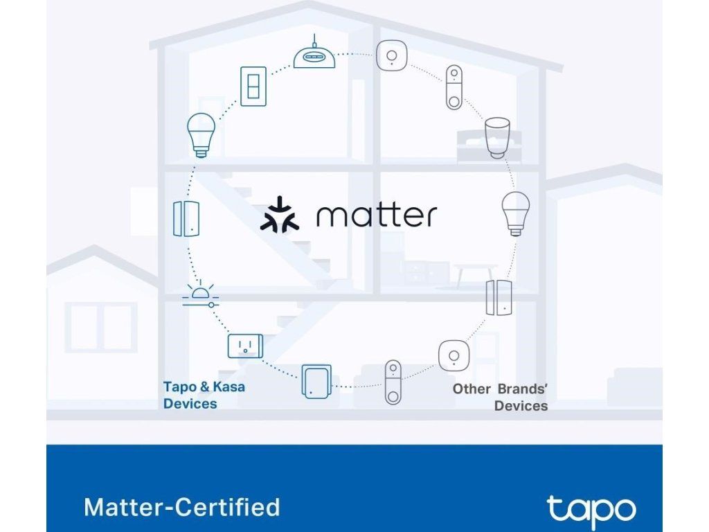 - Certifikácia Matter: Integrujte zariadenia Tapo certifikované Matter s ďalšími produktmi kompatibilnými s Matter do vášho preferovaného ekosystému.