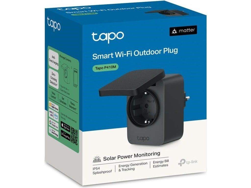 TP-Link Tapo P410M venkovní chytrá WiFi mini zásuvka (3680W,16A,2,4 GHz,BT,IP54,Matter certified)